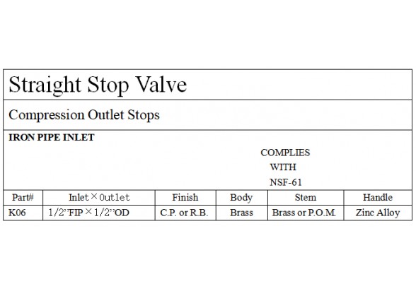 Brass Supply Stop Valve
