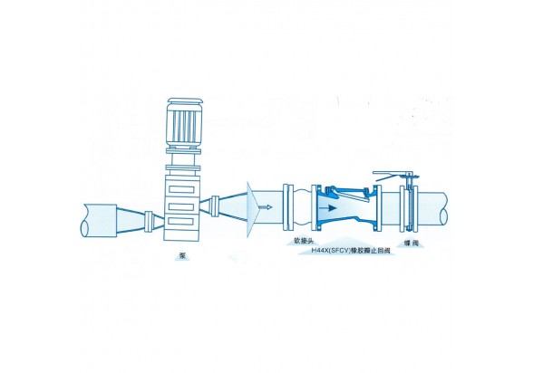 SFCV橡膠瓣止回閥安裝于水泵出口處,可防止水流倒流及水錘對泵的損害。該閥采用全流式設(shè)計,不易堆積雜物,具有水頭損失小,維修方便的特點。該閥還可安裝在蓄水池進出水管的旁通上,以防止池水倒流至給水系統(tǒng)中。